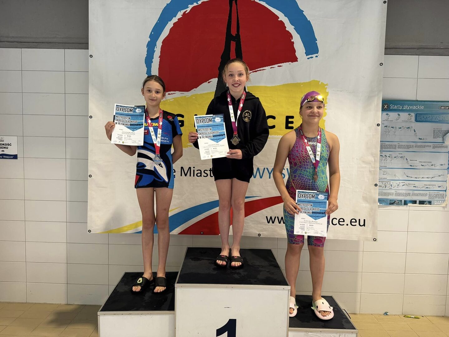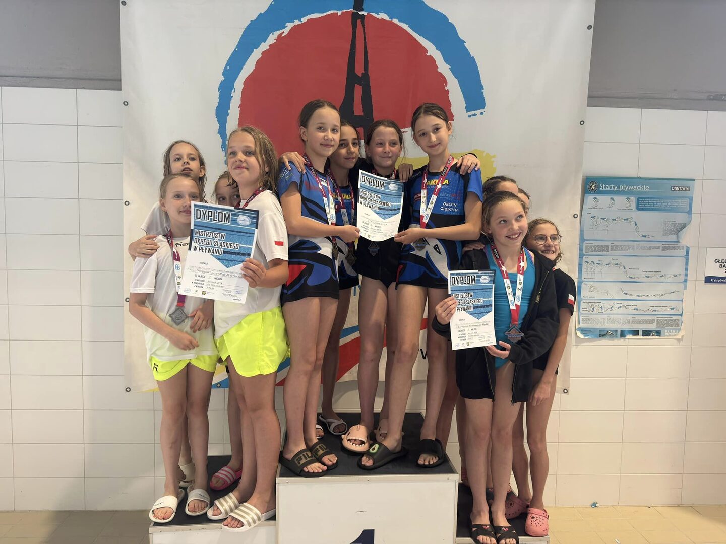Zdobyliśmy dwa tytuły Mistrzyń Śląska w sztafetach 4x50 dowolnym oraz 4x50 zmiennym w składzie: Kaja Legierska, Julia Goryl, Nina Pilch, Katarzyna Sztefka.