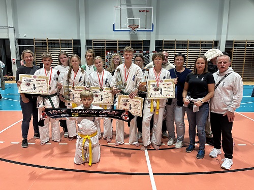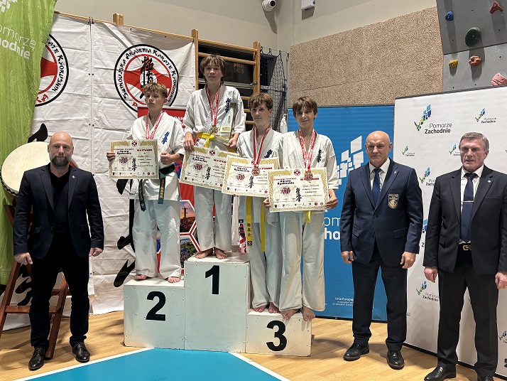 Adam Szydłowski – w kategorii kumite młodzików do 55kg. Już w pierwszych sekundach walki finałowej Adam zdobył waza-ari po precyzyjnym mawashi geri jodan (okrężnym kopnięciu na głowę), które zaskoczyło jego przeciwnika. Nie zwalniając tempa, Adam kontynuował ofensywę, kończąc pojedynek efektywnymi niskimi kopnięciami. Techniki te przyniosły mu kolejne waza-ri i zasłużony ippon, dzięki czemu zakończył walkę przed czasem, zdobywając złoty medal w swojej kategorii.