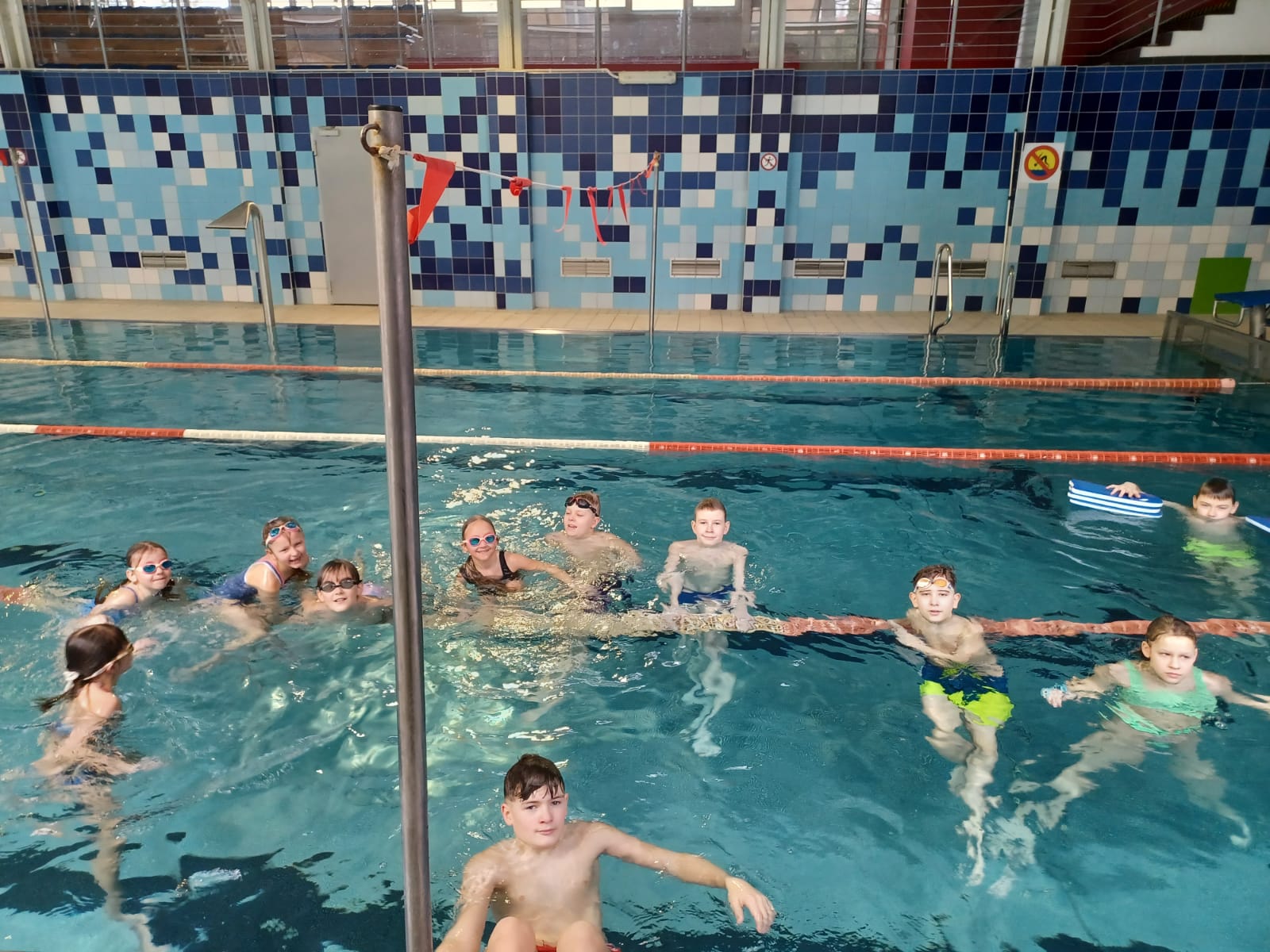 Dzieci miały również możliwość korzystania z basenu, gdzie doskonaliły umiejętności pływackie i świetnie się bawiły. Po intensywnych zajęciach sportowych wszyscy uczestnicy wspólnie jedli obiad, który był okazją do odpoczynku i integracji.