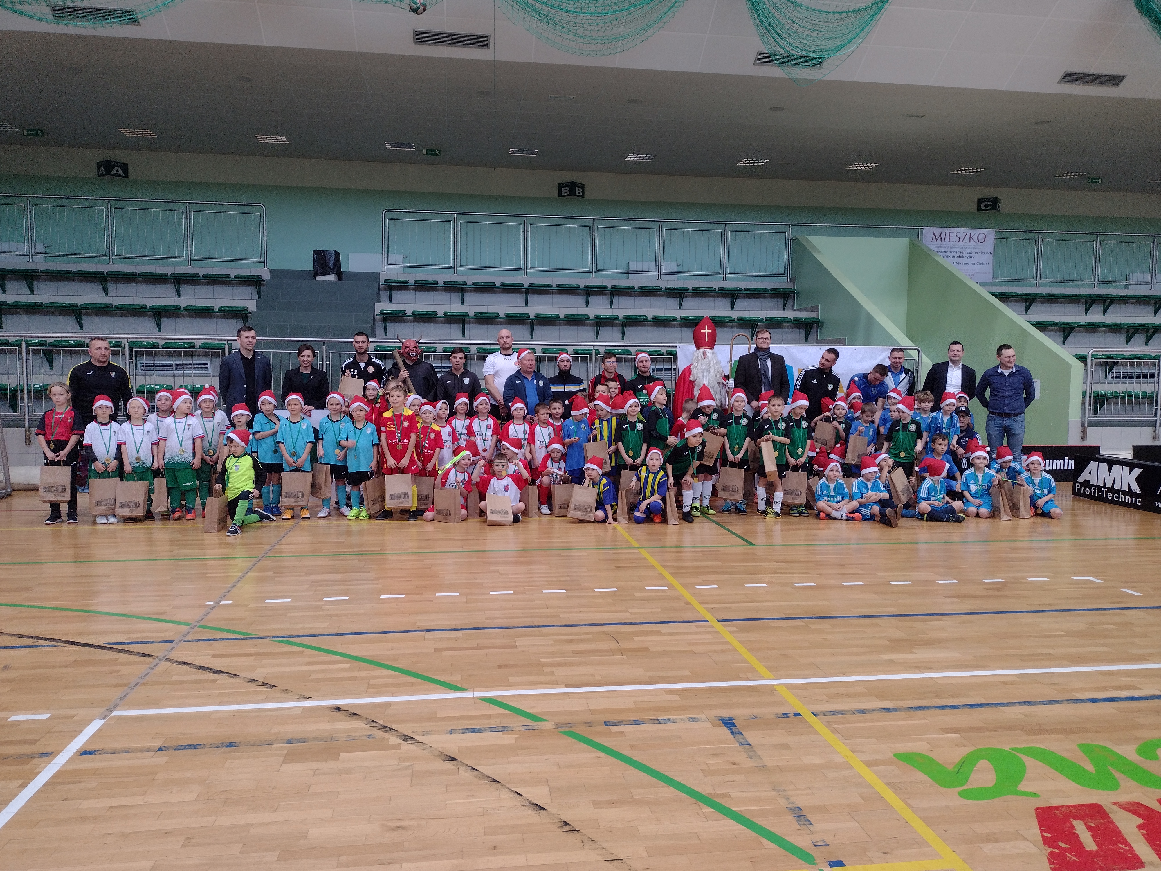 W sobotę drużyna młodzików młodszych UKS Cieszyn grała towarzyski turniej na hali w Kaczycach. Nasza ekipa rywalizowała z drużynami: Stowarzyszenie Orzeł Moszczenica oraz Gwiazda Skrzyszów. Sprawdzian wypadł pomyślnie i nasza ekipa wróciła z kompletem zwycięstw! Drużyna skrzatów oraz skrzatów młodszych wzięła udział w turnieju mikołajkowym organizowanym przez LKS Tworków na hali Arena Rafako w Raciborzu. Wiele radości, pierwsze drużynowe rywalizacje, pierwsze zdobyte gole.